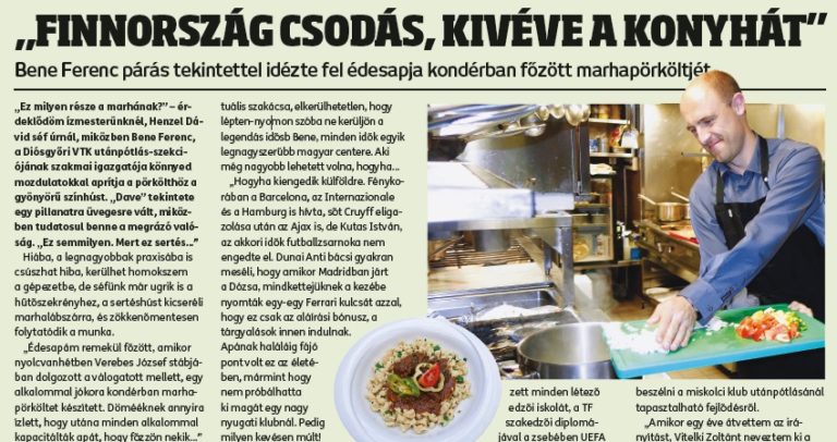 „Ez milyen része a marhának?” – érdeklődöm ízmesterünknél, Henzel Dávid séf úrnál, miközben Bene Ferenc, a Diósgyori VTK utánpótlás-szekciójának szakmai igazgatója könnyed mozdulatokkal aprítja a pörkölthöz a gyönyörű színhúst. „Dave” tekintete egy pillanatra üvegesre vált, miközben tudatosul benne a megrázó valóság. „Ez semmilyen. Mert ez sertés…”