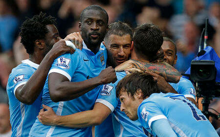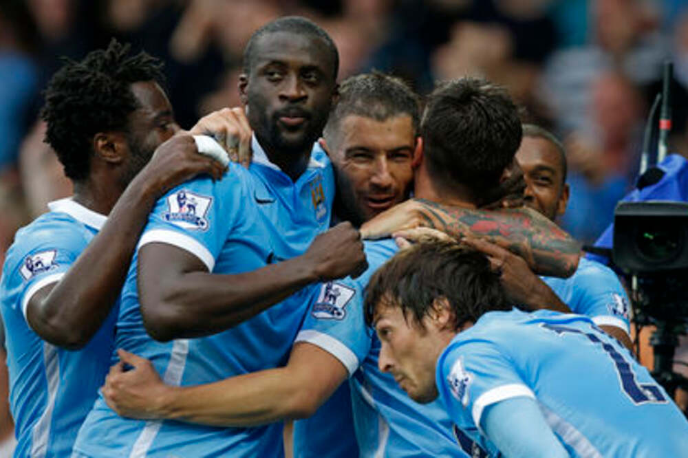 Kolarov (középen, szemből) gólját ünneplik a City játékosai (fotó: Reuters)