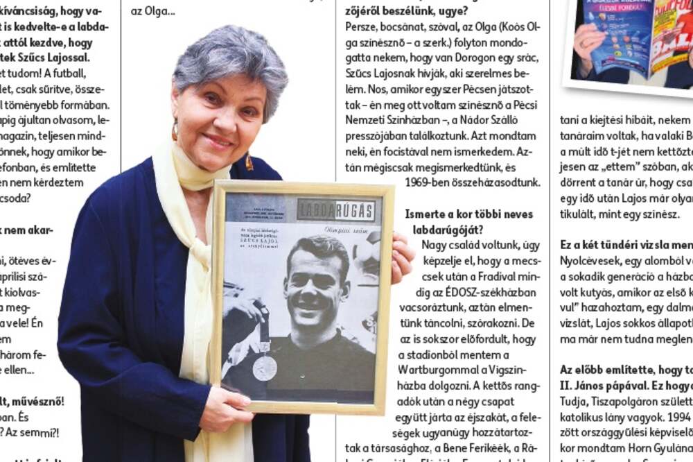 Ebben a házban már az Aranyemberért kapott gázsim is benne van (a legendás filmet 1962-ben forgatták – a szerk.). E falak között lettem a „szexibombiból”, ahogy hajdani önmagamat nevezem, Magyarország legjobb háztartási alkalmazottja. És Gödöllő díszpolgára – Nyíregyháza mellett –, mert arra a címre legalább annyira büszke vagyok, mint Kossuth-díjra, a Magyar Köztársasági Érdemrend középkeresztjére vagy a tagságra a Halhatatlanok Társulatában. Lajos (Szűcs Lajos – a szerk.) is városunk díszpolgára, tudtommal mi vagyunk Magyarországon az egyetlen díszpolgárházaspár. Régóta furdalt a kíváncsiság, hogy vajon tinédzserként is kedvelte-e a labdarúgást, vagy csak attól kezdve, hogy egymásba szerettek Szűcs Lajossal.