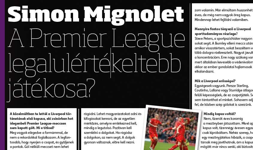 A FourFourTwo magazin májusi számában többek között a Liverpool kapusával, Simon Mignolettel olvashatsz exkluzív interjút.