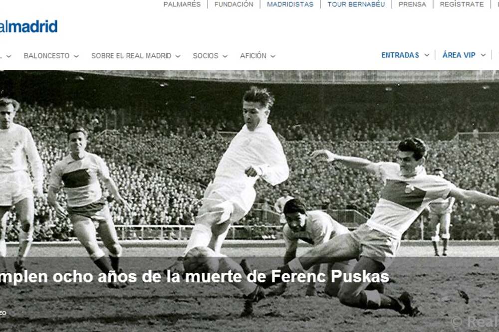 Puskás egykori klubjának hivatalos honlapja a főoldalon ír a nyolcéves évfordulóról: „Nyolc éve hunyt el Puskás Ferenc” – áll a címben, majd a cikk további részében részletesebben is megemlékeznek a nagy magyar játékosról: „242 találatával jelenleg a klub történelmének ötödik legeredményesebb játékosa” – írják. A honlapon továbbá emlékeztetnek Puskás érdemeire, amelyet a Real Madridnál vívott ki magának: kiemelik utánozhatatlan megmozdulásait, rúgótechnikáját, „jó pár más adottság mellett, amelyet élvezhetett a Bernabéu közönsége.” Puskás Ferenc 1927. április 1-jén született Budapesten, a Real Madridhoz már nem éppen fiatalon, 31 évesen érkezett, ennek ellenére történelmet írt a klubnál. Részese volt minden idők legemlékezetesebb BEK-döntőjének, mi több, az Eintracht Frankfurt ellen négy gólt szerzett – ez pedig máig egyedi tett a legrangosabb európai kupasorozat döntőiben. A cikk azzal zárul, hogy Puskás emlékét máig őrzik nemcsak Magyarországon és Spanyolországban, hanem a világ több pontján is: ennek bizonyítéka, hogy a FIFA néhány évvel ezelőtt megalapította a Puskás-díjat, amelyet mindig a legszebb gólt szerző játékos vehet át a szövetség hagyományos gáláján.