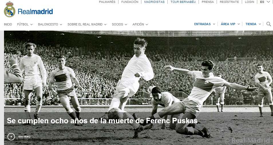 Puskás halálának évfordulója a Realmadrid.com főoldalán