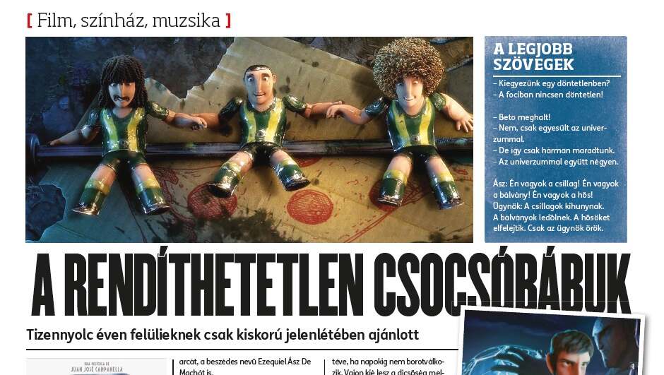 Az FFT kultúrlap! Kételkedsz? Olvasd rendszeresen kritikáinkat, recenzióinkat a műalkotásokról, amelyekben egy a közös: a foci.
