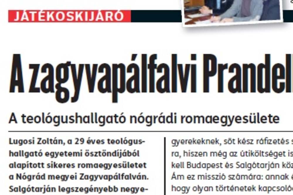 Lugosi Zoltán, a 29 éves teológushallgató egyetemi ösztöndíjából alapított sikeres romaegyesületet a Nógrád megyei Zagyvapálfalván. Salgótarján legszegényebb negyedében szó szerint a semmiből indította el a sportéletet, és ehhez Cesare Prandelli olasz szövetségi kapitánynak is köze van. A Debrecen–Fiorentina BL-meccsen hevesen gesztikuláló tréner olyan hatással volt Zoltánra, hogy elhatározta, edzővé kell válnia. Megszerezte a képesítést, de tapasztalatai szerint az elkényeztetett, gazdag focistapalántákból sohasem lesz nagy játékos, és számításait a nógrádi romatelepen találta meg, ahol még az őszinte lelkesedés hajtja a gyerekeket. (…)