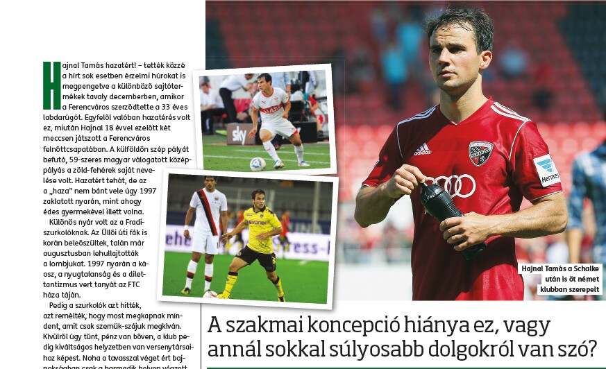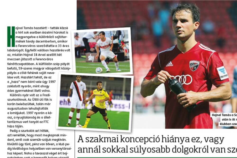 Hajnal Tamás hazatért! – tették közzé a hírt sok esetben érzelmi húrokat is megpengetve a különböző sajtótermékek tavaly decemberben, amikor a Ferencváros szerződtette a 33 éves labdarúgót. Egyfelől valóban hazatérés volt ez, miután Hajnal 18 évvel ezelőtt két meccsen játszott a Ferencváros felnőtt csapatában. A külföldön szép pályát befutó, 59-szeres magyar válogatott középpályás a zöld-fehérek saját nevelése volt. Hazatért tehát, de az a „haza” nem bánt vele úgy 1997 zaklatott nyarán, mint ahogy édes gyermekével illett volna.