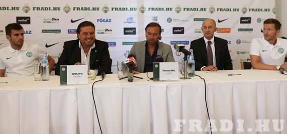 – Olyan labdarúgók – Michal Nalepa, Tomislav Havojic, Predrag Bosnjak, Nagy Dániel Benjamin Lauth és Stjepan Kukuruzovic – érkeztek a csapathoz eddig, akik azonnali erősítést jelentenek a csapatnak. Az Európa Liga igazi megmérettetés a számunkra. Természetesen szeretnénk, ha minél tovább jutnánk az El-ben. Megerősítettük a védelmünket, a középpályánkat és a csatársorunkat, és ha lesz rá lehetőségünk, a továbbiakban is szerződtethetünk még játékosokat. Ezek alapján a bajnokságban egyértelmű a célkitűzés: a 2004-es bajnoki cím már nagyon régen volt, így szeretnénk, ha a következő idény végén ismét aranyérmet ünnepelhetnénk az NB I-ben – mondta a sajtótájékoztatón Orosz Pál, az FTC Labdarúgó Zrt., vezérigazgatója. Természetesen megszólalt Thomas Doll, a csapat vezetőedzője is, aki szintén az új igazolásokat dicsérte. Kiemelte, hogy a kedden igazolt Benjamin Lauth a német válogatottban és a Bundesligában – tehát a világ futballélvonalában – szerzett tapasztalataival segítheti a Fradit. – De a többi igazolásunkat is úgy választottuk ki, hogy belepasszoljon a játékunkba, és minél hamarabb segíthessenek minket. A következő szezont ráadásul gyönyörű stadionunkban játsszuk, ahol szurkolóink egészen közel helyezkednek el a játéktérhez, így óriási erőt adhatnak a mérkőzések közben. Nagy feladatok várnak ránk: az Európa Ligában minél messzebb akarunk jutni, míg a bajnokságban az első hely megszerzése a legfőbb vágyunk – mondta a vezetőedző. Benjamin Lauth már most beírta magát a Ferencváros történelemkönyvébe, pedig még pályára sem lépett. Az egykori német válogatott ugyanis a zöld-fehérek történelmének ezredik játékosa. – Thomas Dollt és Ralf Zumdickot korábbról már ismerem, így tudom, hogy milyen minőségi munkát végeznek, ez is döntő érv volt amellett, hogy a Fradiba igazoljak. Azért jöttem, hogy minél több trófeát szerezzünk a csapattal. Tudom, hogy jó játékot és gólokat várnak tőlem, ezért mindent megteszek majd azért, hogy a legjobb tudásommal segítsem a Fradit és örömet szerezzek a szurkolóknak – mondta a játékos.