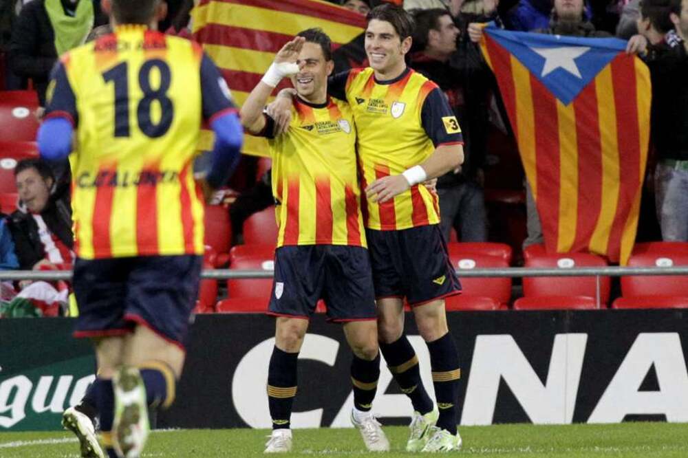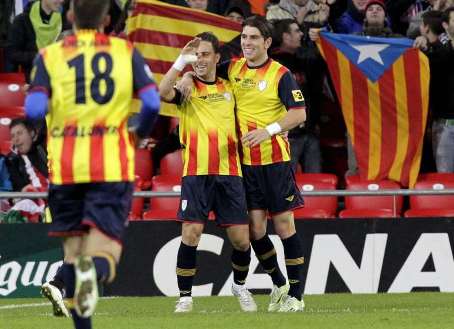 A katalán válogatott kezdőcsapata: Casilla, Piqué, Víctor Sánchez, Busquets, Xavi, A.Vidal, Sergio García, J.Soriano, Bartra, Deulofeu és Jordi Alba.