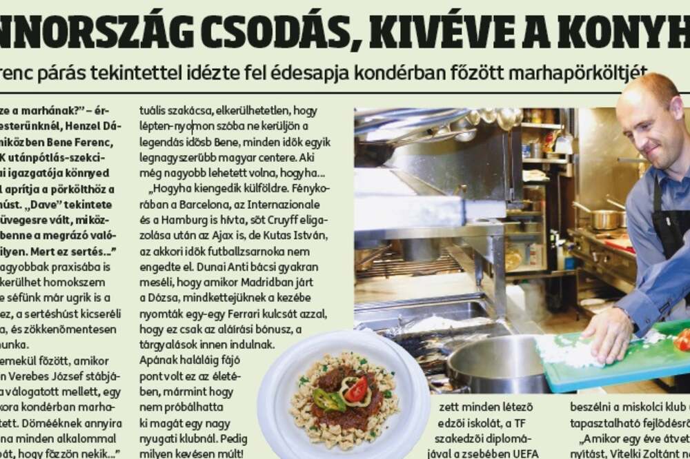 Hiába, a legnagyobbak praxisába is csúszhat hiba, kerülhet homokszem a gépezetbe, de séfünk már ugrik is a hűtőszekrényhez, a sertéshúst kicseréli marhalábszárra, és zökkenőmentesen folytatódik a munka. „Édesapám remekül főzött, amikor nyolcvanhétben Verebes József stábjában dolgozott a válogatott mellett, egy alkalommal jókora kondérban marhapörköltet készített. Dömééknek annyira ízlett, hogy utána minden alkalommal kapacitálták apát, hogy főzzön nekik…”