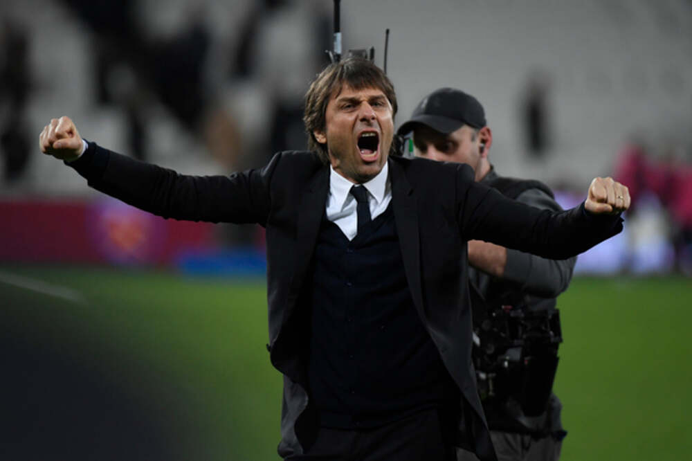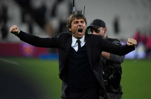 Antonio Conte öröme a Chelsea újabb győztes meccse után (Fotó: Reuters)