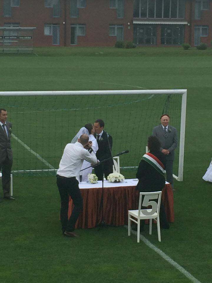 A Sport TV csinos műsorvezetője, Takács Rita és a magyar labdarúgó-válogatott stábjának tagja, technikai vezetője, Tömő Atilla egybekelt. A nagy eseményt a Telki edzőközpont egyik pályáján tartották a Facebookon közzétett fénykép tanúsága szerint.