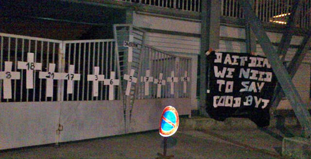 Nehezen viselik a szombati 6-0-s zakót az Újpest szurkolói. Felháborodásuk miatt kereszteket raktak ki a Szusza Ferenc Stadion bejáratára a hétvégén pályára lépő játékosok mezszámaival. A csapat edzőjétől pedig finoman elköszöntek... Durva!