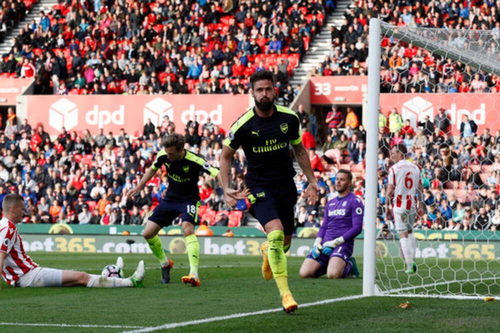 A Premier League 36. fordulójában az Arsenal a Stoke City vendége volt. A londoniaknál Olivier Giroud duplázott, az Arsenal végül 4-1-es győzelmet aratott. Premier League, 36. forduló: Stoke City – Arsenal 1-4 (Crouch 67., ill. Giroud 42., 80., Özil 55., A. Sánchez 76.)