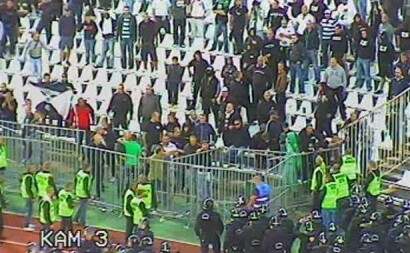 A Pesti Központi Kerületi Bíróság szerdán kihirdetett elsőfokú ítéletében önkényuralmi jelkép használatának vétsége miatt N. L. elsőrendű vádlottat mint felbujtót 2 évre, P. Z. másodrendű vádlottat társtettesként 3 évre, H. Á. harmadrendű vádlottat szintén társtettesként 4 évre eltiltotta az MLSZ és tagszervezetei által rendezett sportesemények látogatásától.