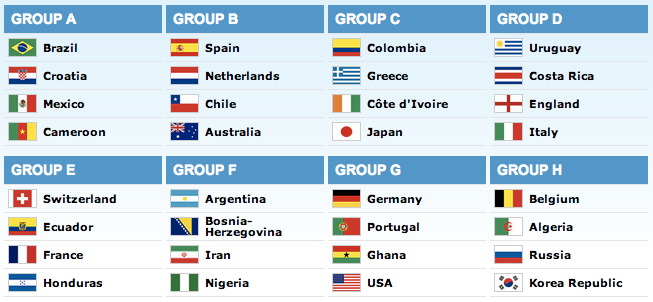 Spanyolország A spanyol válogatott nagyon sokáig amolyan kibicnek számított a labdarúgó-világbajnokságokon. Rendre jó csapattal érkeztek a tornára, a végső győzelemre is esélyesek között emlegették őket, ám évekig nem tudtak számottevő eredményt elérni. A spanyolok először 1934-ben vettek részt világbajnokságon, akkor a negyeddöntőig meneteltek. Később többször előfordult, hogy nem indultak vagy ki sem jutottak a legrangosabb labdarúgó-tornára, így történt például 1954-ben és 1958-ban is, de az elkövetkezendő két világbajnokságon is csak a csoportkörig jutottak. A spanyolok megítélése 2010-ben változott meg jelentősen, amikor Vicente del Bosque vezetésével az akkor már Eb-címvédő együttes a tornagyőzelemig menetelt Dél-Afrikában. A hollandok elleni finálét Andrés Iniesta döntötte el a hosszabbításban. Az ezt megelőző két tornán nem szerepelt jól az együttes, 2006-ban csak a nyolcaddöntőig jutottak, ahol szoros meccsen Franciaországgal szemben maradtak alul, 2002-ben pedig Dél-Korea a nyolc között ütötte el a spanyolokat a továbbjutástól, hathatós játékvezetői támogatással. Bár nem a mostani a spanyol aranygeneráció legjobb pillanata, Brazíliában feltétlenül az esélyesek között kell emlegetni őket. Hollandia Ha a világbajnoki döntőket tekintve beszélhetünk szerencsétlen nemzetről, akkor az egészen biztosan Hollandia. Az oranje ugyan már három világbajnoki finálénak is részese volt, de ezek közül egyszer sem tudta győztesen elhagyni a pályát. A hollandok az 1930-as uruguayi világbajnokságon még nem vettek részt, és az ezt követő tornánok sem értek el semmilyen komolyabb eredményt, mi több a legtöbbször kvalifikálni sem tudták magukat az eseményre. 1974-ben aztán nagyon hirtelen megváltozott a holland futball és a válogatott megítélése, amikor a Neeskens és Cruyff fémjelezte együttes egészen a döntőig menetelt Németországban, ahol csak nagyon szoros küzdelemben maradt alul a házigazdával szemben. Négy évvel később kitartott a hollandok lendülete, a csapat újra döntőt játszott, ám – ezúttal hosszabbítás után – ismét vereséget szenvedett a rendező Argentínától. A későbbi években Hollandia sokáig a vb-döntő közelébe sem tudott kerülni, és olyan is előfordult amikor ki sem jutottak a tornára. 2006-ban nyolcaddöntőt játszottak, míg négy évvel később – többek között a nagy esélyes Brazíliát búcsúztatva – újra robbantottak, és Dél-Afrikában némi meglepetésre a döntőbe kerültek. A fináléban azonban megint balszerencsés volt az oranje, a spanyolok Iniesta hosszabbításban szerzett találatával 1-0-ra nyertek, így a hollandok továbbra is vb-cím nélkül maradtak. A brazíliai világbajnokság is hozhat egy dicsőséges holland szereplést, a riválisok erejét figyelembe véve azonban az sem lenne abszolút váratlan, ha már a csoportkörben nehézségei támadnának a csapatnak, amely elsősorban gyors kontrafutballja révén okozhat kellemetlen perceket az ellenfélnek. Chile A dél-amerikai együttes a 2014-es torna egyik meglepetéscsapata lehet, amennyiben a kulcsemberek úgy futballoznak majd, mint klubcsapataikban. Alexis Sánchez vagy épp Arturo Vidal bármely válogatott ellen komoly veszélyt jelenthet, ráadásul ezúttal nemcsak technikailag, de taktikailag is érett generáció állt össze Chilében. A chileiek már az első világbajnokságon ott voltak, Uruguayban azonban már a csoportkör a végállomást jelentette számukra. Komolyabb eredményt egyelőre nem tudtak elérni a világbajnokságokon, leszámítva az 1964-es tornát, amikor hazai pályán bronzérmet szereztek. Az elmúlt tornán már voltak arra utaló jelek, hogy 2014 akár a chileiek éve is lehet, négy éve Dél-Afrikában a nyolcaddöntőig jutottak, Brazília ellen azonban nem volt esélyük a továbbjutjásra. A 2002-es és a 2006-os tornáról egyaránt hiányzott a dél-amerikai ország válogatottja, az ezt megelőző 1998-as tornán pedig a nyolcaddöntő jelentette a végállomást számukra. Ausztrália Technikailag nem annyira, de erőben és gyorsaságban mindig Európa legjobb csapatai között lehetett beszélni az ausztrálokról, akik bármely válogatott ellen képesek felvenni a harcot. A Socceroosnak becézett ausztrálok 1930 és 1962 között egyetlen világbajnokságon sem indult el, 1966-ban és 1970-ben pedig nem tudták kvalifikálni magukat. Először 1974-ben ismerhették meg a Mundiálok hangulatát, nagyot azonban nem alkottak, lévén már a csoportkörben búcsúzni voltak kénytelenek. Ezt követően ismét évekig képtelenek voltak kijutni a legrangosabb labdarúgó-tornára, a 2000-es években azonban folyamatosan javult az ausztrál futball helyzete, és szépen lassan felnőtt egy olyan generáció, amely már a legjobb válogatottakkal is képes volt versenyezni. Ekkor egyre több ausztrál labdarúgó tette le a névjegyét az európai elit bajnokságokban, a legjobb játékosok közül elég említeni Kewell vagy Viduka nevét, a válogatott pedig nekik is köszönhetően elkezdett jó eredményeket elérni. 2006-ra egy kimondottan erős ausztrál válogatott állt össze, a szövetségi kapitány Guus Hiddink volt, a csapat pedig a németországi tornán egészen a nyolcaddöntőig jutott, ahol csak nagyon szoros meccsen kaptak ki az olaszoktól. Négy évvel később sem vallottak szégyent az ausztrálok, igaz Dél-Afrikában nem sikerült megismételni az előző tornán bemutatott nagy menetelést, ekkor csak a csoportkörig jutott a Socceroos.