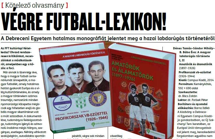 A Debreceni Egyetem hatalmas monográfiát jelentet meg a hazai labdarúgás történetéről.