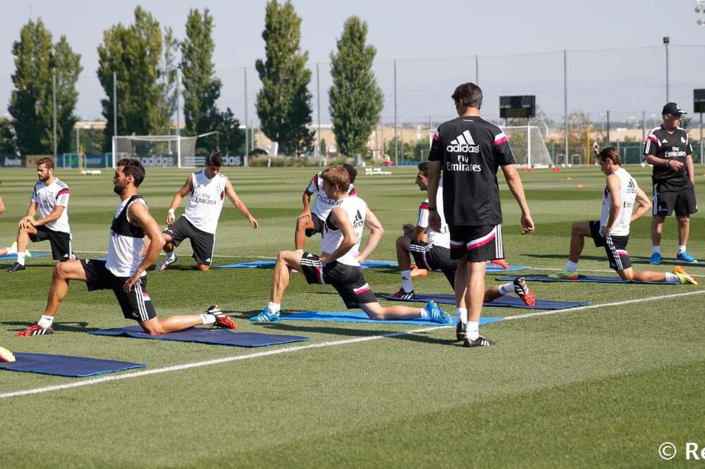 A Real Madrid játékosai a hétfői ráhangolódó tréning után kedden már komolyabb edzésen is részt vettek a valdebebasi sportcentrumban. A BL-győztes gárda ugyan egyelőre messze nem teljes, de azért például Carlo Ancelotti már ott volt a Sportvárosban, és jó pár kulcsjátékos is elvégezte az új idény első gyakorlatait. Lássuk a képeket!