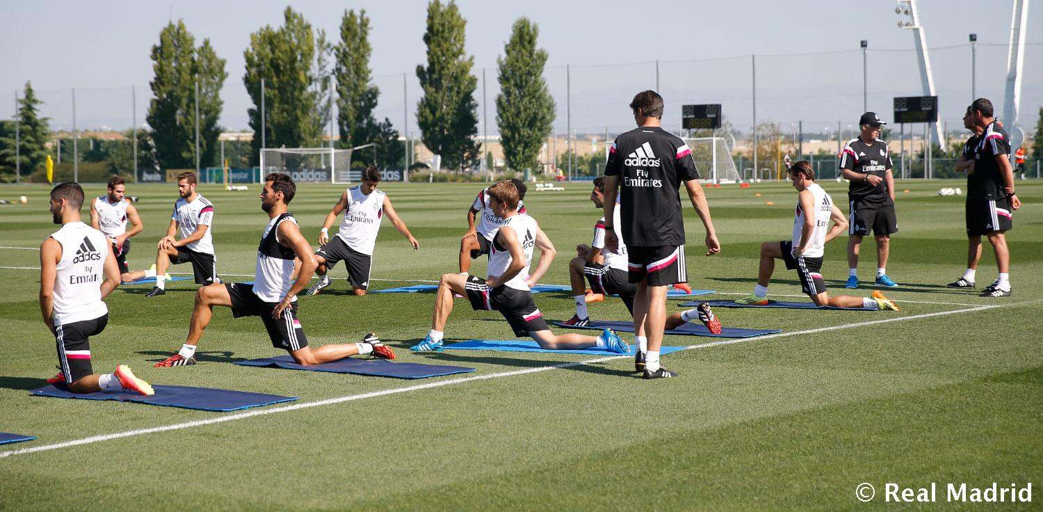 A Real Madrid játékosai a hétfői ráhangolódó tréning után kedden már komolyabb edzésen is részt vettek a valdebebasi sportcentrumban. A BL-győztes gárda ugyan egyelőre messze nem teljes, de azért például Carlo Ancelotti már ott volt a Sportvárosban, és jó pár kulcsjátékos is elvégezte az új idény első gyakorlatait. Lássuk a képeket!