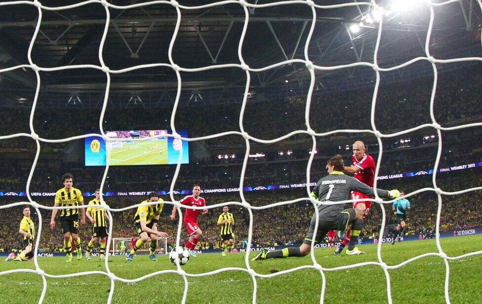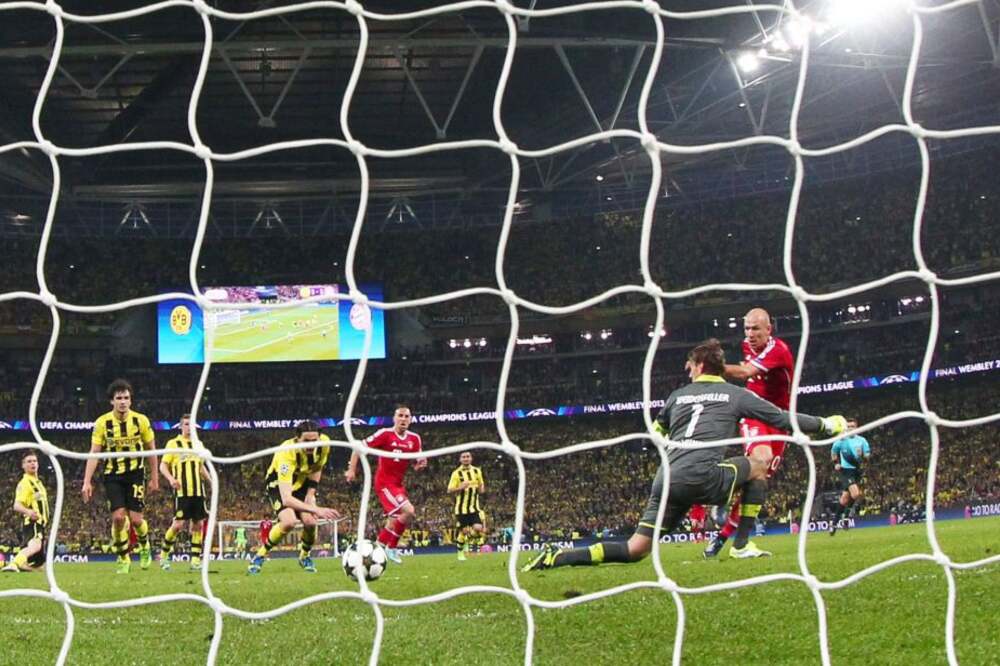 Arjen Robben győztes gólja hosszú negatív széria végére rakott pontot. Az 1987-es BEK-döntőben Ludvig Kögl góljával vezettek a bajorok, de előbb Rabah Madjer sarkalt, majd Jugary lőtte a Porto győztes gólját. 1999-ben Mario Basler vezető találata után a hajrában kapott ki a Bayern a Manchester Unitedtől. Teddy Sheringham majd Ole-Gunnar Solksjaer góljával fordított a MU Barcelonában. 2012-ben hazai pályán, az Allianz Arenában is vezetett a Bayern, de tavaly sem lett az övé a serleg. Thomas Müller vezető gólját Didier Drogba egyenlítette ki. A végén 11-esekkel bukott el a München. És idén, 2013-ban megtört a pocsék sorozat. Mario Mandzukic gólját még kiegyenlítette Ilkay Gündogan, de Arjen Robben a BL-győzelmet érő győztes gólt szerzett.