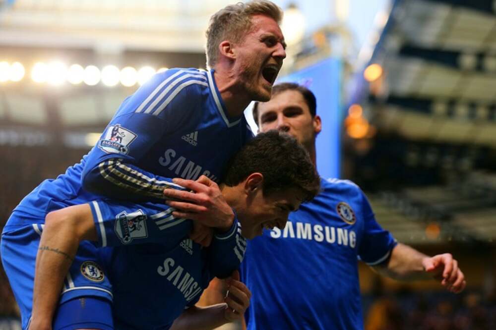 André Schürrle mesterhármasával a Chelsea 3-1-re győzött a Fulham otthonában a Premier League 28. fordulójában, amivel megerősítette pozícióját a bajnokság élén. Már csak azért is, mert a legnagyobb londoni rivális, az ugyancsak a bajnoki címre hajtó Arsenal elhasalt a Stoke City vendégeként.
