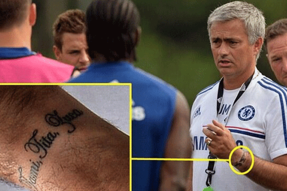 Mourinho József először néhány napja, a Chelsea egyik edzésén lepte meg játékosait, amikor nem a megszokott "viseletben" jelent meg az edzőközpontban: bal kezén ezúttal nem egy méregdrága karóra díszelgett, hanem egy tetoválás, amit két gyermeke és felesége tiszteletére vésetett magára, életében először. Tami, Tita, Zuca – így hívják a tréner feleségét illetve a két gyermekét, mostantól pedig ez a három név olvasható Mourinho bal csuklóján.