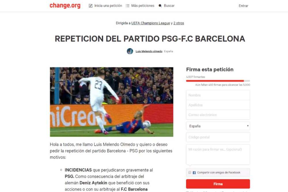 Mint ismert, a meccset némi játékvezető segítséggel 6-1-re nyerte meg a Barcelona, és ezzel a sporttörténelem egyik legnagyobb feltámadását hajtotta végre. Persze vannak olyanok, akik szerint ez a csoda nem jöhetett volna létre a német játékvezető, Deniz Aytekin hathatós közreműködése nélkül, s ezért lépéseket is tettek az elmúlt napokban: a change.org internetes oldalon ugyanis az egyik felhasználó petíciót indított azért, hogy újrajátsszák a visszavágót. A kezdeményezés eddig nagy siker, hiszen néhány nap alatt már mintegy 120 ezren írták alá. Mindazonáltal nem valószínű, hogy ez meghatja majd az UEFA vezetőit…