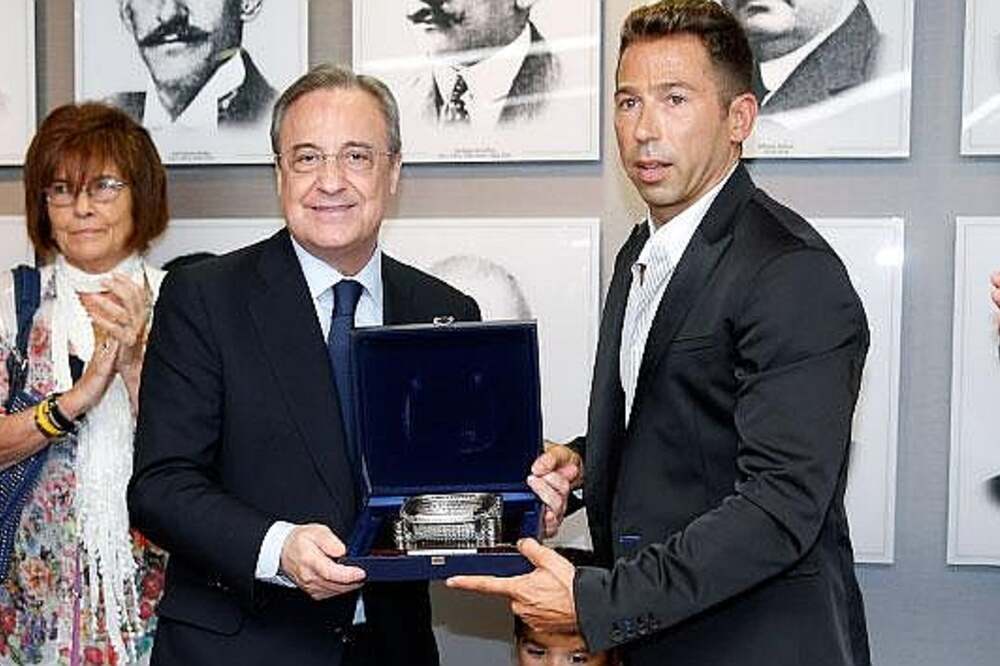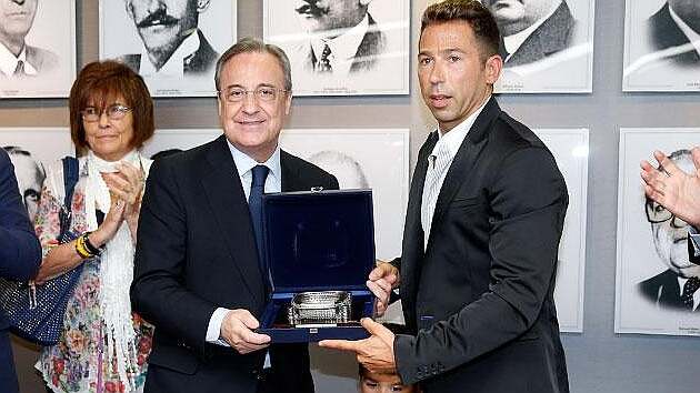 Raúl Tamudo (jobbra) Florentino Péreztől vette át az elismerést (Fotó: Marca)