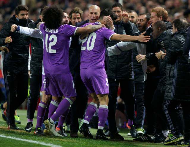 A Spanyol Király-kupa nyolcaddöntőjének visszavágón a tartalékos Real Madrid a Sevilla otthonába látogatott azok után, hogy az első meccsen, Madridban 3-0-s előnyt szerzett. A sevillai visszavágó azonban így sem volt unalmas, mi több, a két csapat az idény egyik legjobb meccsét játszotta: a Real fiatal játékosa, Marco Asensio egy pazar szóló után talált a Sevilla kapujába, ennek ellenére a hazaiak kétgólos előnyben is voltak, a Real ismét az utolsó pillanatokban tudott egyenlíteni – többek között Sergio Ramos pimasz 11-esével. A két csapat végül emlékezetes meccs után 3-3-ra végzett, ami azt jelentette: a Real immáron 40 meccse veretlen, és megdöntötte a Barcelona csúcsát Spanyolországban! Király-kupa-nyolcaddöntő, visszavágó: Sevilla – Real Madrid 3-3 (Danilo10. – öngól, Jovetic 54., Iborra 77., ill. Asensio 48., Ramos 83. – 11-esből, Benzema 93.) Továbbjutott a Real Madrid 6-3-as összesítéssel.