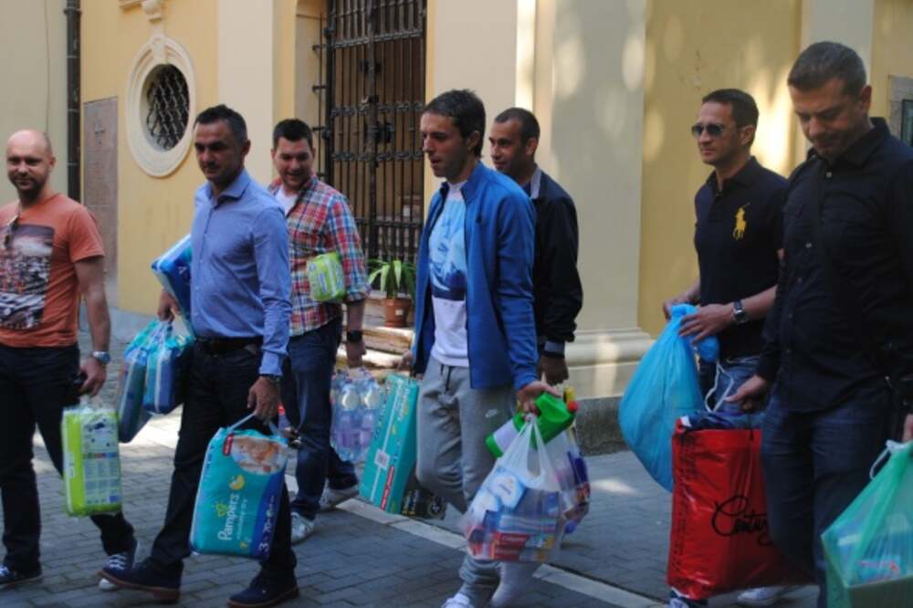 Az F-Group menedzseriroda vezetői – Filipovics és Szabó Tibor –, az Újpest trénere, Nebojsa Vignjevics, az MTK védője, Dragan Vukmir, és a Ferencváros futballistája, Vladan Csukics tisztálkodó- és tisztítószereket, konzerveket, pelenkát, vizet vittek a belvárosi, Szerb utcában lévő templomba, ahonnan kamion szállítja majd tovább a csomagokat a rászorulóknak. Győrből Szasa Sztevanovics segíti a szervezést, de mindenki más hozzájárulása is fontos! Az adományokat a Veres Pálné utcai szerb templomba, a Rózsák terén található Szerb Gimnáziumba, vagy a Dózsa György úti szerb nagykövetségre várják. A pénzbeli felajánlásokat az OTP 11784009-20005351 számú forintszámláján tehetik meg, ez a szerb önkormányzat számlaszáma. „Ahogy azt a kormányfő is mondta: ezer éve ez a legsúlyosabb árvíz Szerbiában. Mindannyiunk érintett, vannak családtagjaink, ismerőseink, akik bajba kerültek, egyértelmű, hogy segítünk. Jó látni, hogy a szerb légiósok – profiskodjon Újpesten, a Fradiban, az MTK-ban, vagy éppen Győrben –, első szóra ugrottak, és pénzt, vagy adományt küldenek haza. Aki tud, segítsen, mert tényleg borzasztó a helyzet!” – mondta Filipovics Vladan. „Amikor az MTK-ban elmondtam, milyen katasztrofális állapotok uralkodnak a hazámban, Domonyai László klubigazgató és Deutsch Tamás elnök rögvest jelezte, segítenek. Az öltözőnk is gyűjtést szervez. Szasa Sztevanovics Győrből küldi az adományokat, és Debrecenből is érkezik felajánlás. Minden vasárnap ebbe a szerb templomba jövünk a családommal, de ezúttal különleges volt a szertartás: az otthoniakért mondtunk imát” – nyilatkozta Dragan Vukmir.