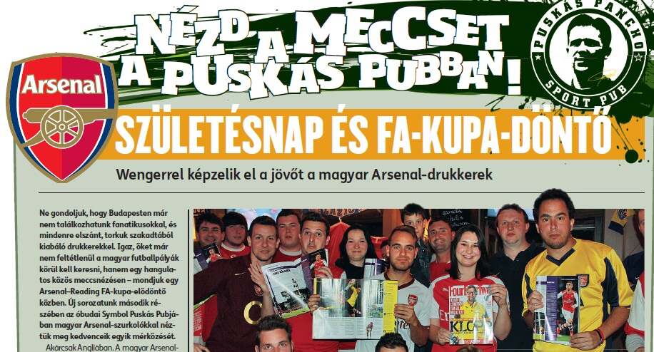 Akárcsak Angliában. A magyar Arsenal-rajongók ilyen hangulatot teremtenek egy nyugodt áprilisi délutánon a budapesti helyszínen, mielőtt megannyi kilométerrel arrébb kedvenc csapatuk az FA-kupa döntőjéért fog pályára lépni a Wembleyben. Az érkezés tempója gyors, előtte nem is nagyon van idő beszélgetni, de egy-két spontán elszólásból kiderül: mivel az ellenfél a másodosztályú Reading, a legtöbben sima győzelmet várnak, csak keveseknek fordul meg a fejében, hogy ez a meccs még szoros is lehet.
