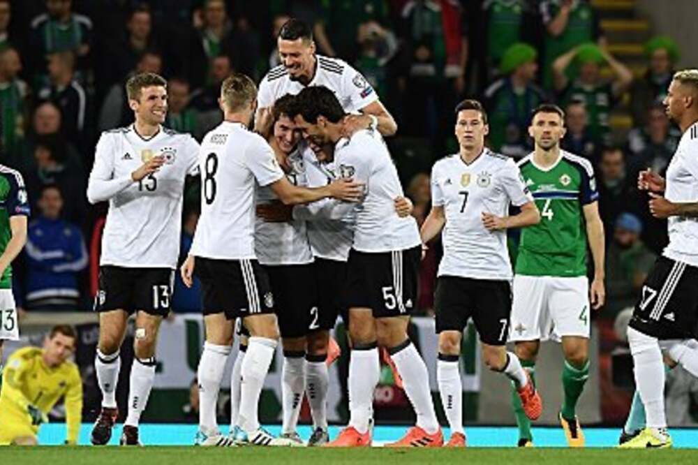 A vb-selejtezők európai zónájának C csoportjában Németország Észak-Írország otthonában lépett pályára, azzal a tétel, hogy ha nyern, ott van a világbajnokságon: Joachim Löw tanítványai pedig egy könnyed 3-1-es győzelemmel meg is oldották a házi feladatot, a kvalifikációs szakasz tehát kipipálva. A C csoport mai eredményei: Észak-Írország–Németország 1–3 (Magennis 93., ill. Rudy 2., Wagner 21., Kimmich 86.) San Marino–Norvégia 0–8 (Henriksen 8., J. King 14., 17. – az elsőt 11-esből, Elyounoussi 39., 48., 68., Selnaes 59., Linnes 87.) Azerbajdzsán–Csehország 1–2 (Ismayilov 55. – 11-esből, ill. Kopic 35., Barák 66.) Az állás a 9. forduló után: 1. Németország 27, 2. Észak-Írország 19, 3. Csehország 12, 4. Norvégia 10, 5. Azerbajdzsán 10, 6. San Marino 0.