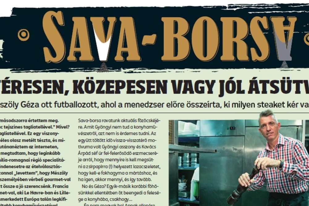 „Lazac tejszínes tagliatellével.” Mivel? Hát tagliatellével. Ez egy viszonylag széles olasz metélt tészta, és miután utánanéztem az interneten, azt is megtudtam, hogy leginkább az emilia-romagnai régió specialitása. Mindenesetre az ételválasztásból azonnal „levettem”, hogy Mészöly Géza személyében vérbeli gourmet-val hozott össze a jó szerencsénk. Francia gourmet-val, aki Le Havre-ban és Lilleben ismerkedett Európa talán legkifinomultabb konyhaművészetével. „A Le Havre-i kiköto a halászokkal, halárusokkal feledhetetlen emlék, húsz év után is beleborzongok. Aki élt arrafelé huzamosabb ideig – márpedig nekünk megadatott Gyöngyivel –, az megszerette a tengeri finomságokat. Talán ennyit az ételválasztásomról” – mondja a magyar U19-es válogatott szövetségi edzője.