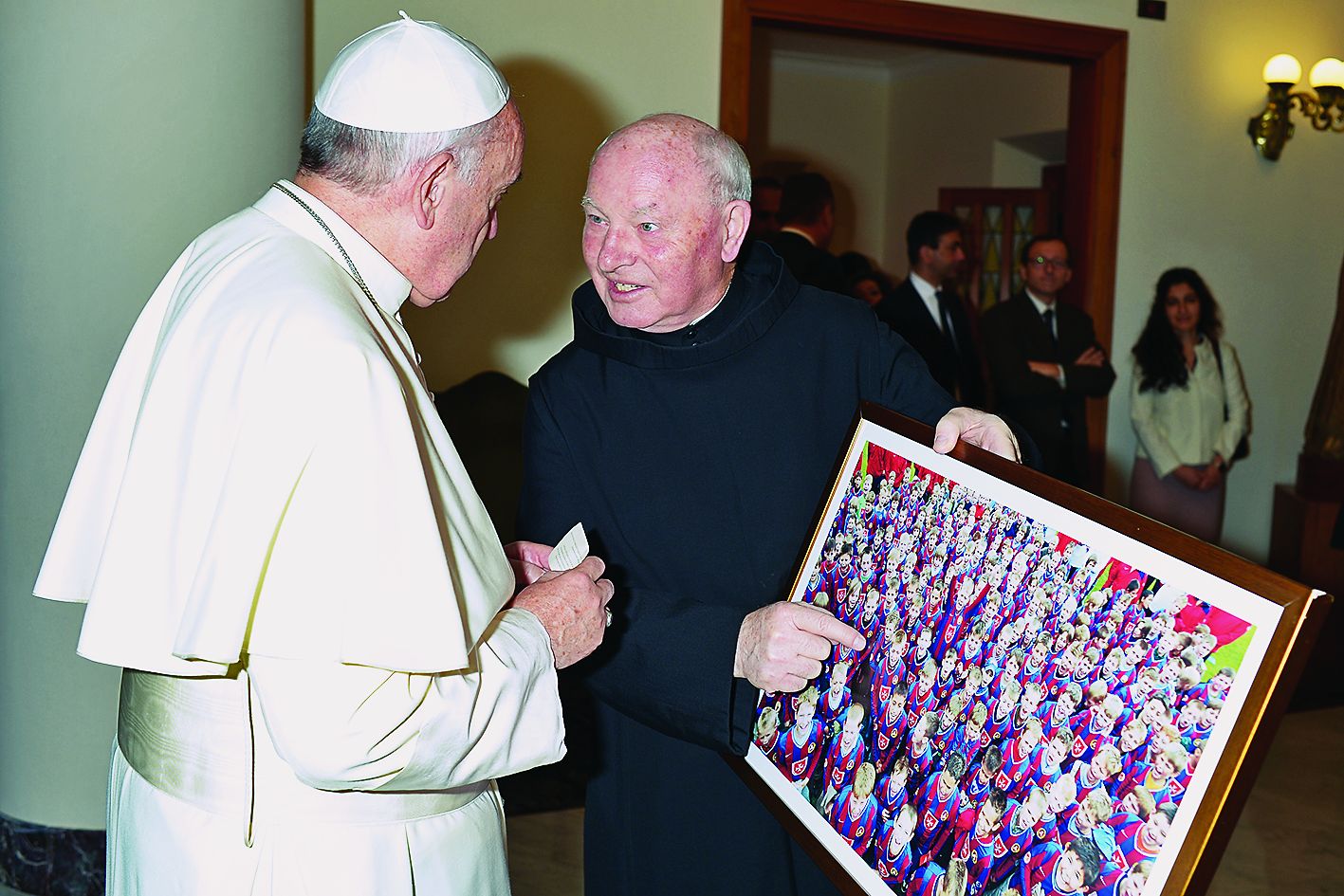 Kozma Imre atya, irgalmasrendi szerzetes, a Magyar Máltai Szeretetszolgálat alapító vezetője, a keletnémet menekültek egykori gyámolítója rendszeres vendége a Sóstói stadion VIP-páholyának.